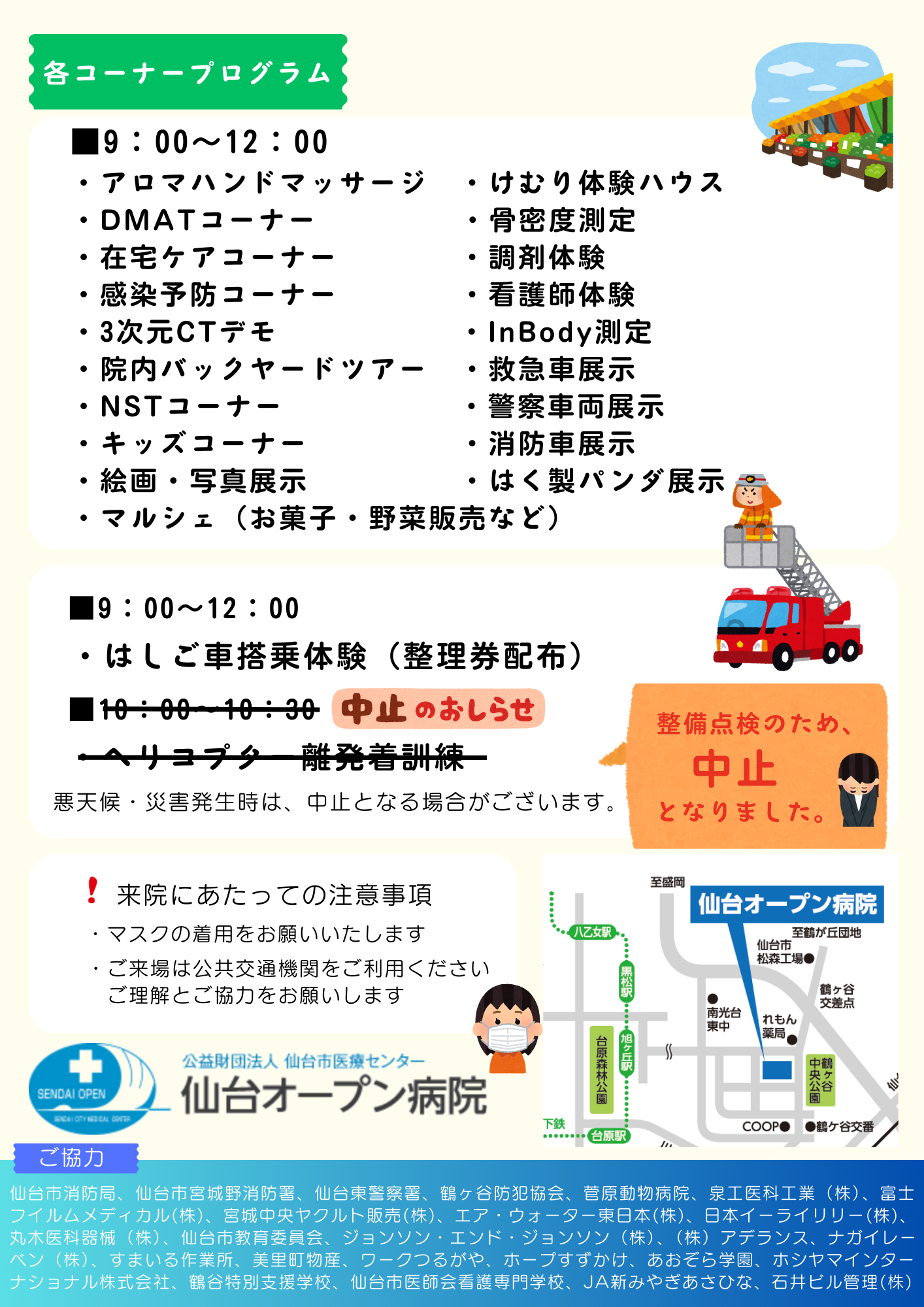 はく製パンダ展示・院内バックヤードツアー・絵画/写真展示・アロマハンドマッサージ・キッズコーナー等