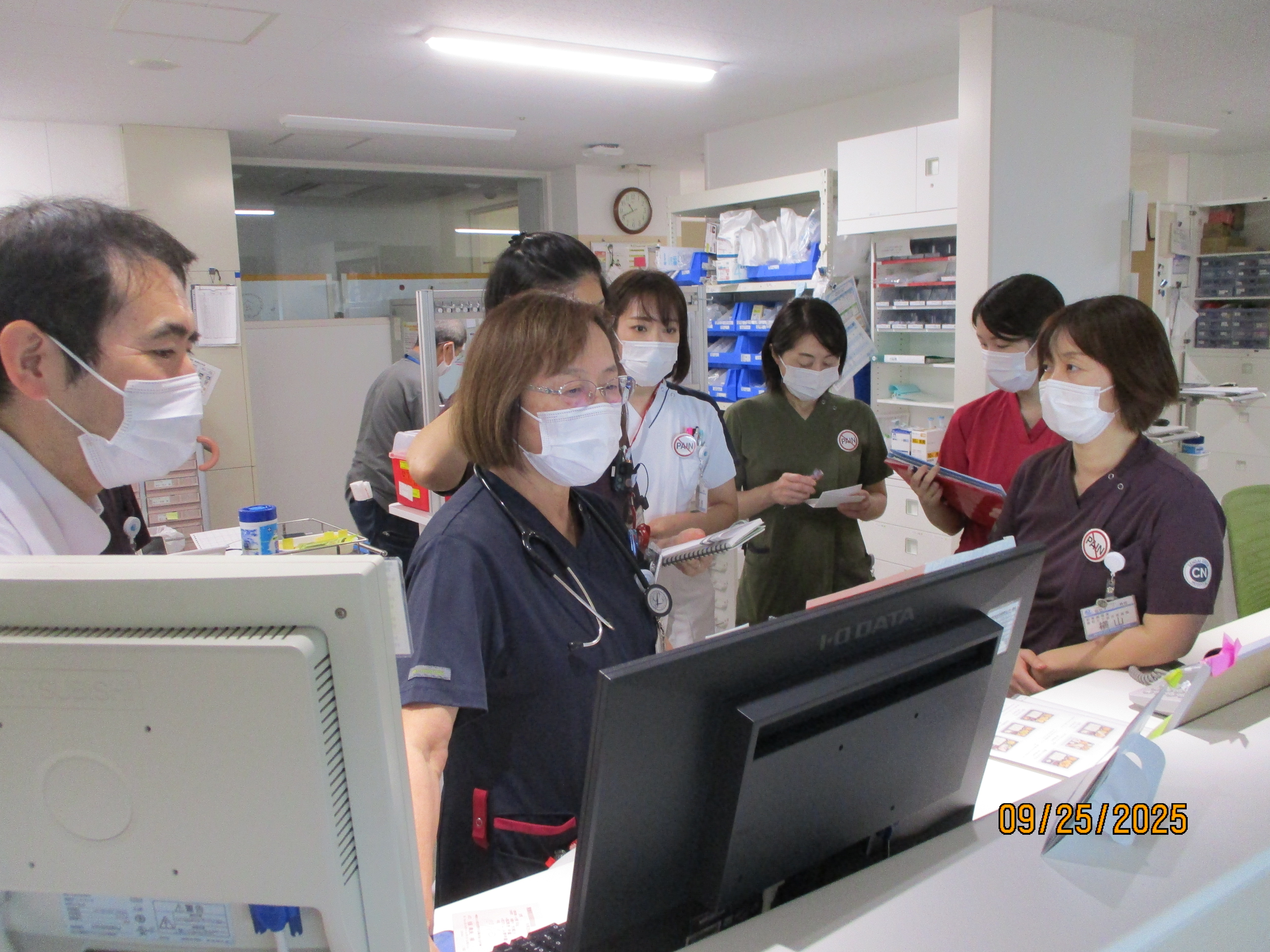 ICTは院内感染防止を推進する実務機関として、毎週院内ラウンドを実施し、病院全体の環境の改善などに努めております。病院内外での感染症の把握、院内感染予防対策の実施、感染症に関する相談も受け付けております。また薬剤耐性菌の出現と蔓延を防ぐため、毎週抗菌薬ラウンドを実施し、院内での抗菌薬の使用状況の把握及び適正使用の推進を行っております。