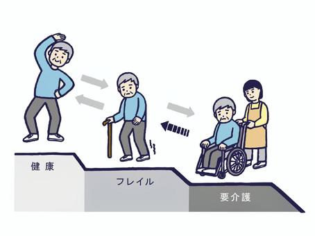 日本の高齢化率は29%を超え超高齢社会を迎えている。平均寿命は男女とも82歳を超えているが、健康寿命は約72歳であり10年近くが要介護の状態である。介護が必要になる原因は、認知症や脳卒中などの生活習慣病とフレイル(加齢に伴う虚弱)が80%を占め、超高齢社会を生き抜くにはその予防が大切である。